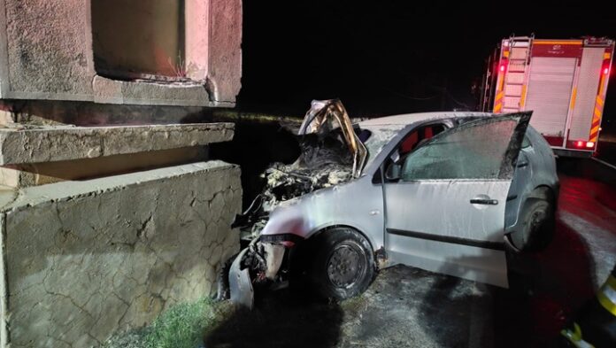 Accident rutier la intrarea în Slatina: un autoturism a luat foc după impact