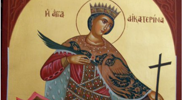 Sfânta Muceniţă Ecaterina, fiica principelui Consta, a trăit în timpul împăratului Maximian, la începutul secolului al IV-lea. Cunoscătoare de limba greacă şi latină, cu cunoştinţe solide de astronomie şi oratorie, Ecaterina a primit două viziuni care i-au schimbat radical viaţa. În acestea, Hristos i-a oferit un inel de logodnă, îndemnând-o să nu accepte alt mire pământesc.